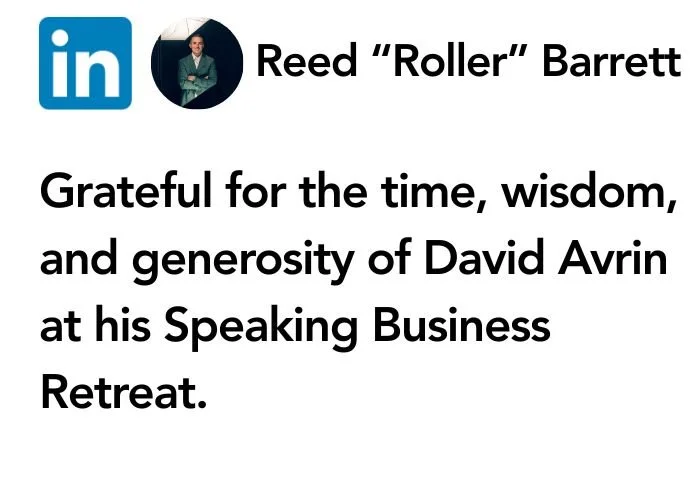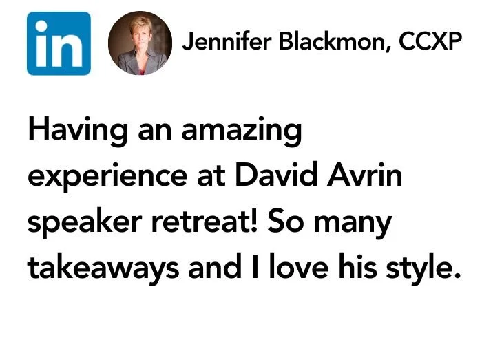 After a 7-year hiatus, David Avrin’s SPEAKING BUSINESS RETREAT is back!